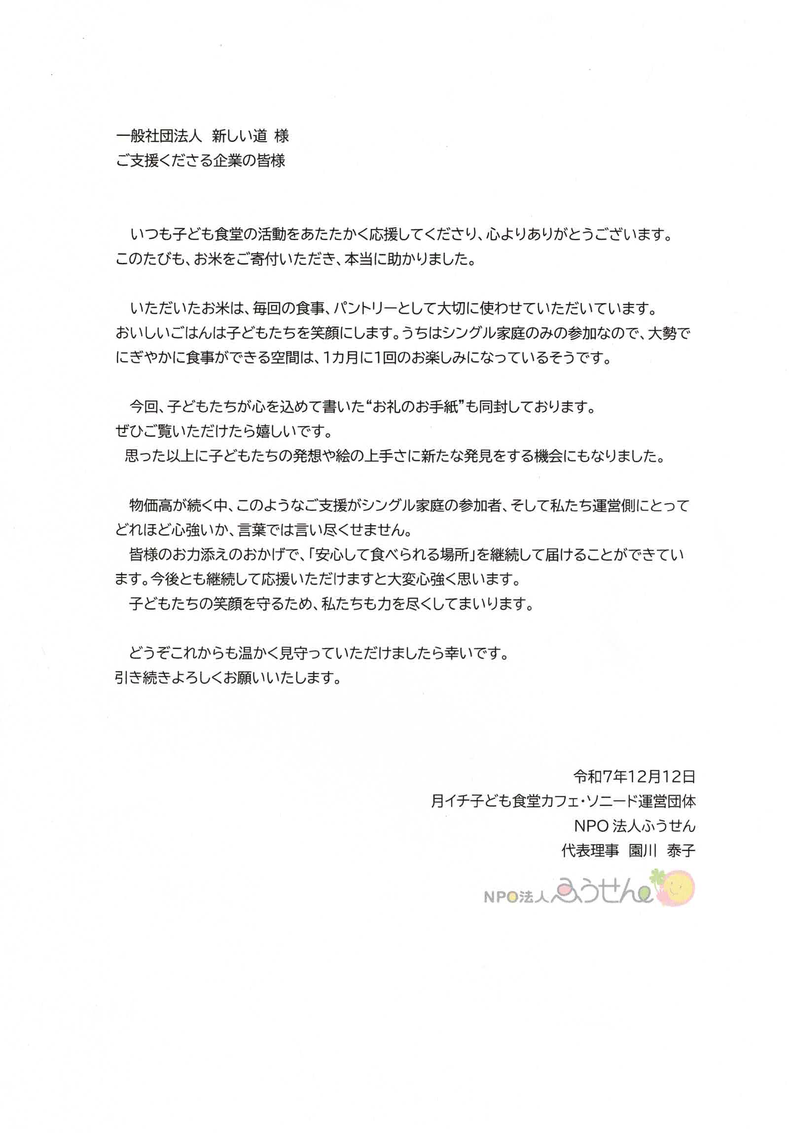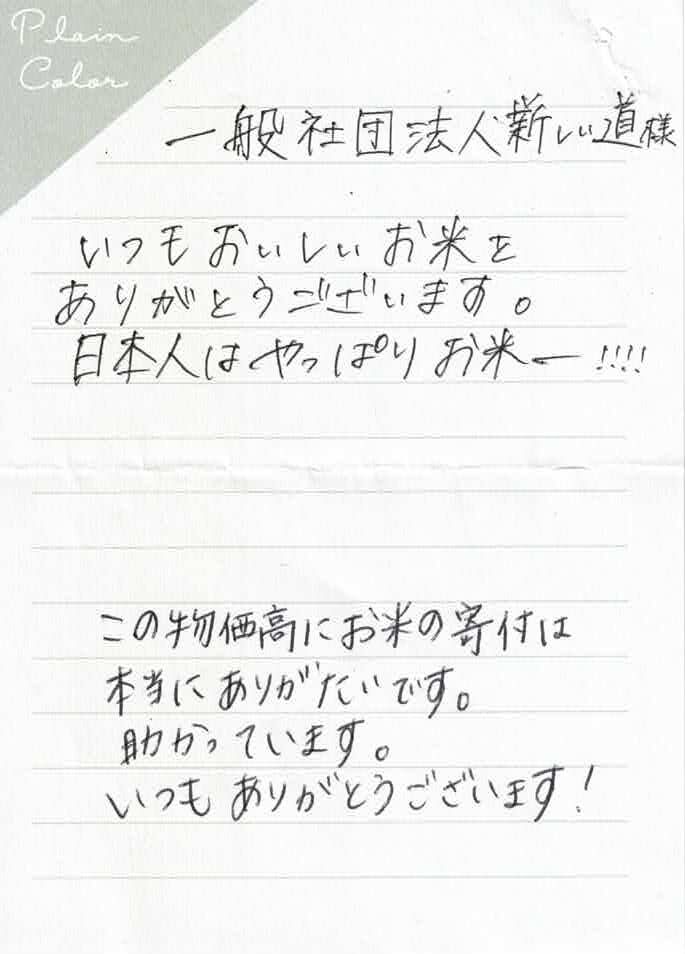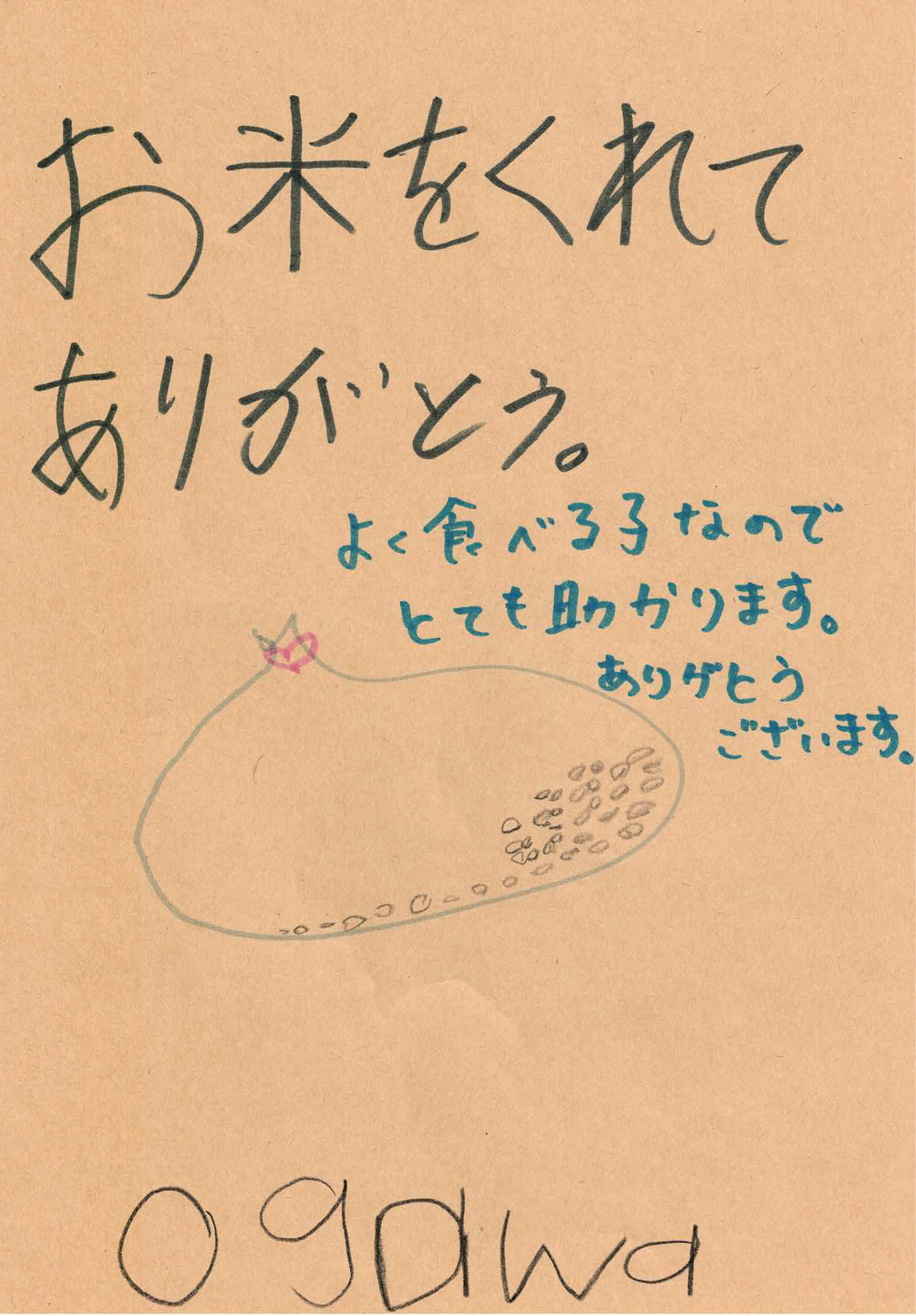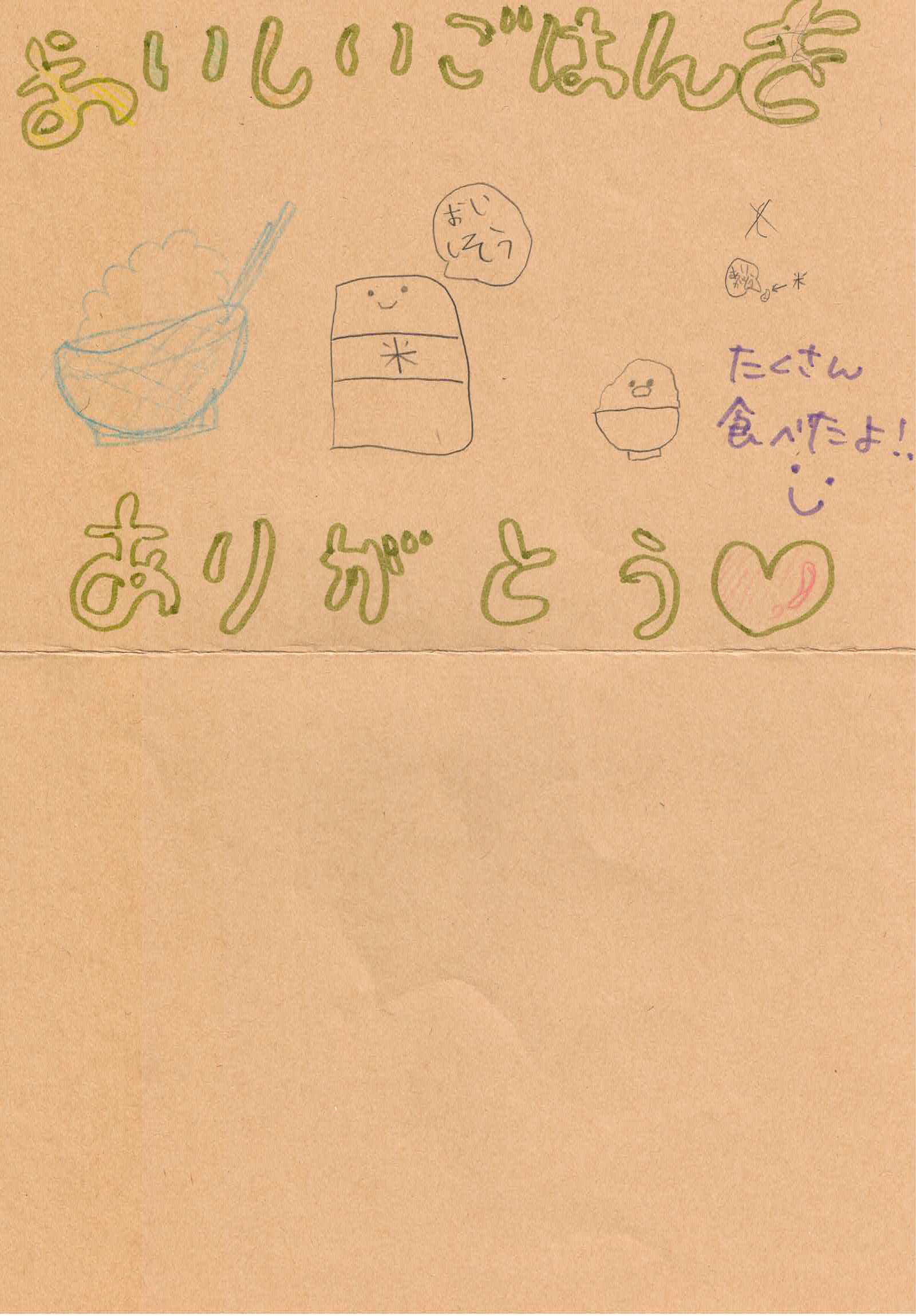 お米を寄贈した子ども食堂を利用する子どもたちからメッセージをいただきました。