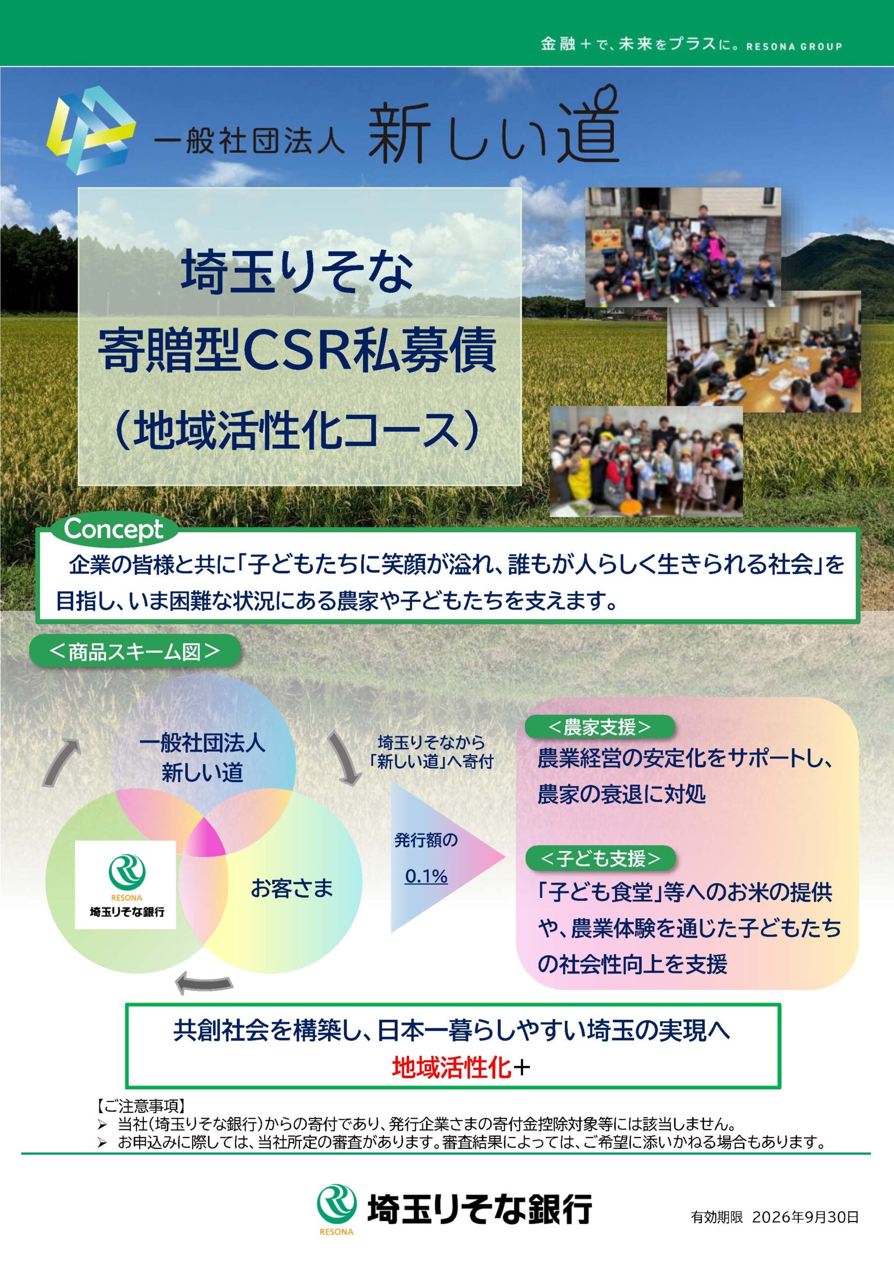 【新しい道】埼玉りそな寄贈型CSR私募債(地域活性化コース)